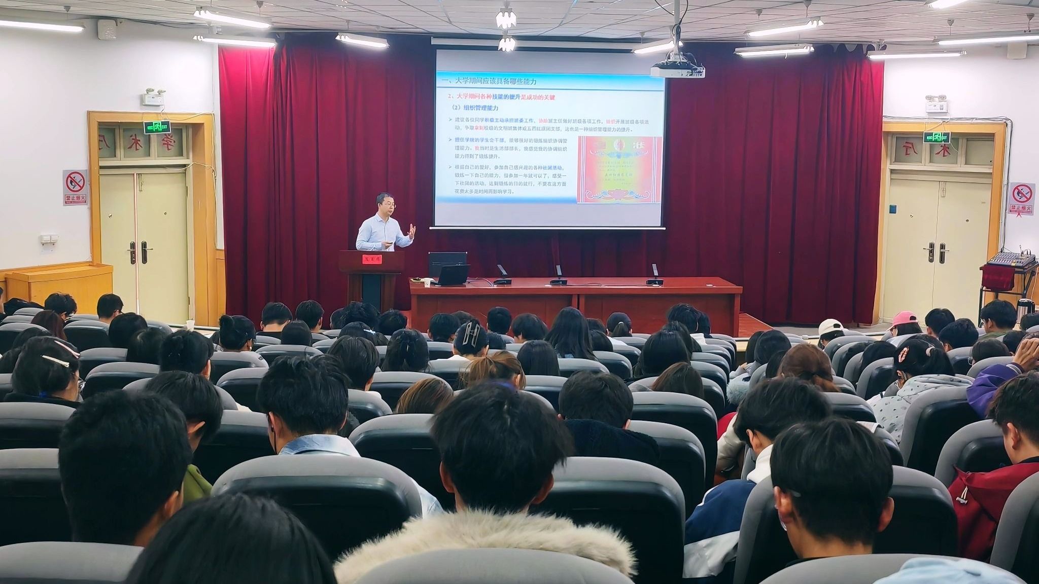 在报告中,张前兵教授深情回顾了十七年前在河西学院的求学经历,结合自身从本科一路成长为石河子大学博导的奋斗历程,围绕“大学能力培养”“毕业选择”“考研意义”等主题展开分享。他建议大学生应提升六个方面能力:一是职业规划能力;二是人际交往与组织管理能力;三是自控能力;四是主动学习能力;五是创新能力;六是科研能力。最后,他引用“幸福是奋斗出来的”寄语学子,激励大家保持积极心态,勇担强农兴农使命。